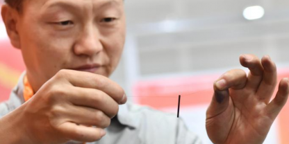 6月18日,山西省太原市,職業(yè)技能大賽選手用發(fā)絲穿鉛筆芯,展示“鉛筆芯上鉆微孔”成果。當日,第五屆山西省職業(yè)技能大賽暨第三屆全國技能大賽山西選拔賽開賽。本屆大賽設(shè)46個賽項,來自29支代...